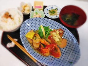 ・メイン 軽い煮込みハンバーグ&マグロパン粉焼き