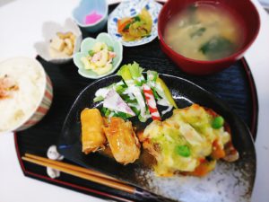 ・メイン 豚肉の豆腐巻き&サーモンのグラタン仕立て