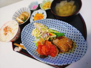 ・メイン ハンバーグの煮込み2種ソース&マグロパン粉焼き