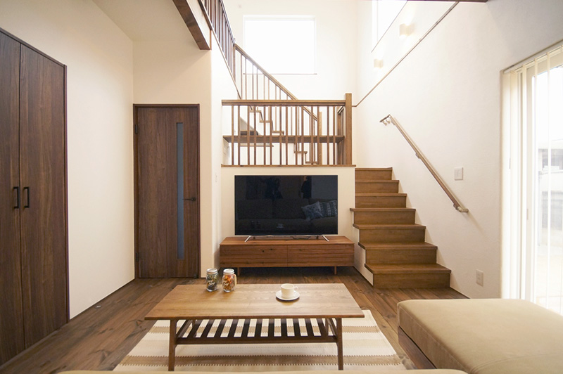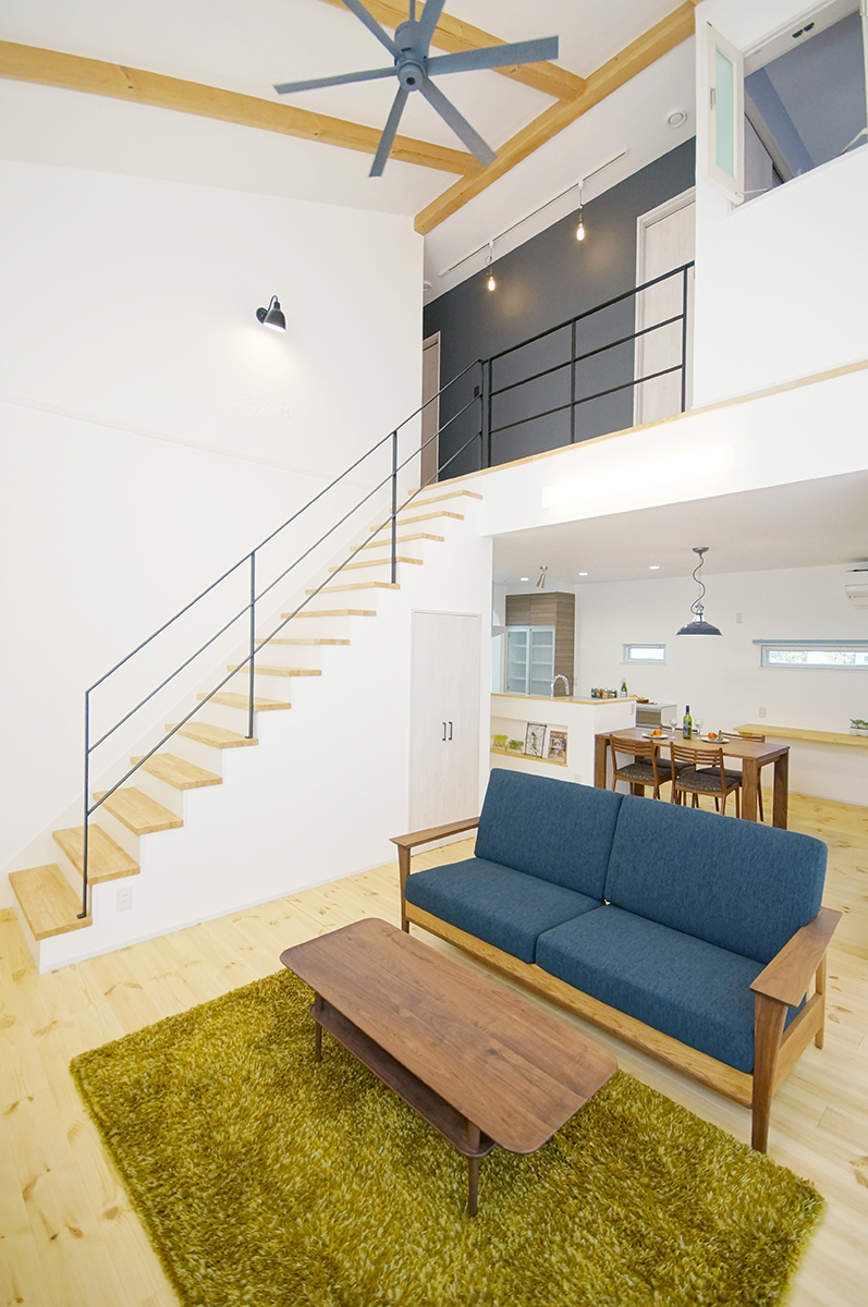 詳細を見る行き止まりのない動線でぐるりと回ることのできる「回遊プラン」が特徴のお家。 流れるように作業ができるので、家事ストレスが大幅に軽減。 日々の暮らしを快適に過ごせる工夫です。 さらに、大きな吹き抜けとスチール手すりがついた階段が開放的な空間を作り出し家族がのびのび暮らせます。