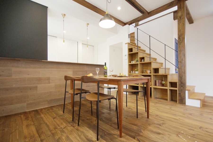 詳細を見るダークブラウンのペイント、ウォールナットの家具やレトロな照明器具をあしらってナチュラルヴィンテージなテイストにまとまりました。 ゆとりある住空間を創造するスキップフロアを採用して、お洒落さと実用性を兼ね揃えた極上の空間に仕上がりました。