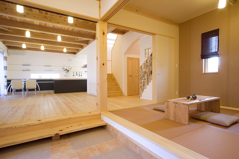 床は石、壁は漆喰、天然の木を使い、化学物質がほとんど検出されない無添加な家です。