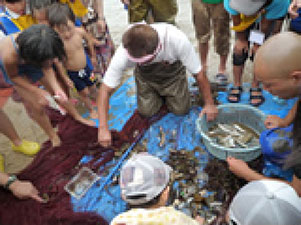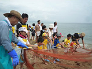 森の散策や、植林、山からの恩恵を受ける海での地引網体験を通して、先人の暮らしの知恵などを教わります。