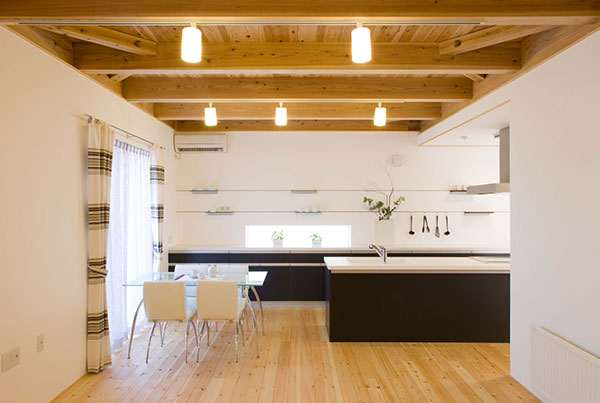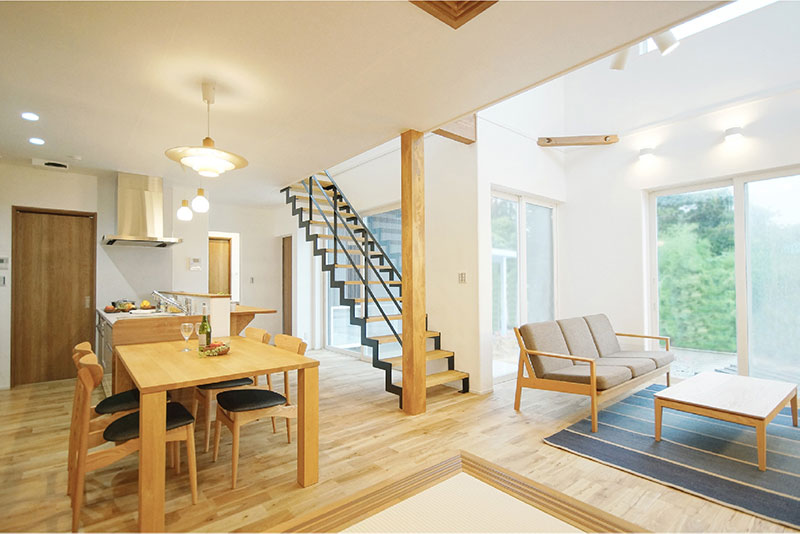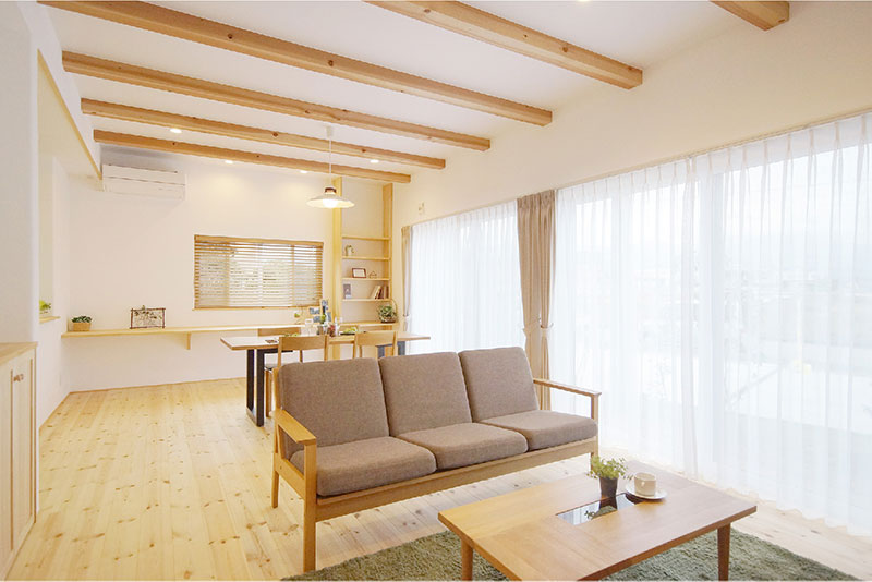 『ナチュライフ』は、自然素材の質感をそのまま生かした空間をコンセプトに、床には赤松の無垢材を、柱にはヒノキ、梁には米松を使用しています。時間が経っても褪せない心地よい香り、温かなぬくもりは、まるで自然の中で暮らしているかのようなくつろぎを与えてくれます。