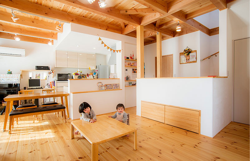無垢材はアレルギーのお子様にも優しく、ずっと笑顔でいられる幸せな空間です。