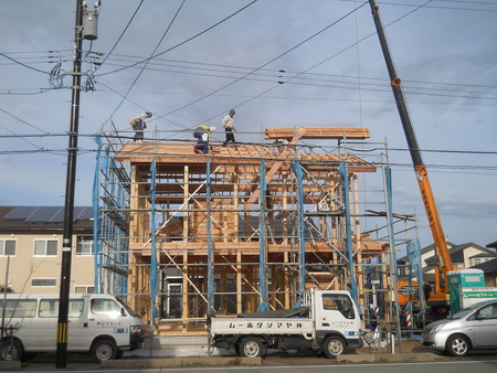 先日、お打合せに参加させて頂いているT様邸の上棟が行われました。 連日の悪天候が気がかりでしたが、当日は曇り空ですが雨はほとんど降らず、気温も12月にしては暖かい上棟日和でした 私は夕方からの参加で、仕事は専ら掃除です。 その傍らで、お施主様のお子様が工作に使うために、柱などの”きれっぱし”を選んでおられました。 ひとつひとつ、手にとってじっくり選んでいる姿がとても可愛かったです 持ち帰った木材達は何に変身するかとても楽しみです。 完成したらきっと新しいお家のインテリアのひとつになるのでしょうね 私も柱の”きれっぱし”を2、3個頂いて帰りました。 とてもいい香りがするので、天然の芳香剤になるよと土肥さんに教わり、マネして車に置いて香りを楽しんでいます。 ”きれっぱし”を集めるのが趣味になりそうです   山本 人気ブログランキングへ
