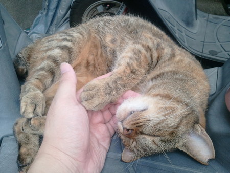 う~ん~、かわいいー!! 癒されます。 実は、この子は野良ちゃんなのですが、そばへ行くと寄ってきて膝の上で寝ちゃうんですよ。 すごいでしょ。もう、家のねこちゃんみたいです。 内緒だけど、鈴木さんちの猫もかわいいけど負けてないでしょ。 今は、この猫ちゃんはいません。お嫁に行きました。うん?雄かな?? いなくなって寂しいけど良かったです。 毎日、待ち受けに入れて癒されています。 by ogawa でした。