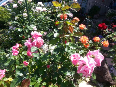 梅雨入りしたのに 暑いですー 久しぶりの鈴木です     ブログ入力 新しいシステムに変わり PC苦手な鈴木は それだけで おどおど・・・ 今日は 我が家の庭を紹介 昨年 庭師に作って頂いた日本庭園? 庭石や灯篭 垣根 大きなどうだんツツジやもみじなどの木を 思いっきりきれいに? 撤去して バラ園にしました。