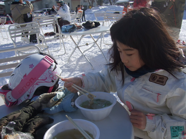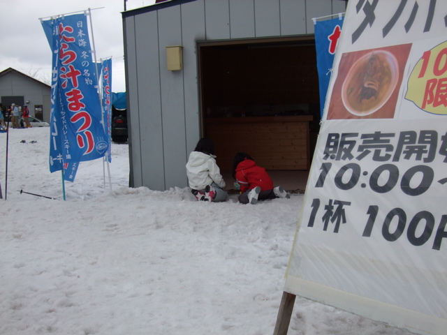 みなさんいかがお過ごしでしょうか? 今回はワタクシ(松島)の休日の過ごし方(1~2月の日曜日限定)を紹介したいと思います。 まぁ特に変わった過ごし方ではないんですが・・・ 朝は6時ごろに起床。 で、前日までに掛けてあったスキー&ボードのワックスをゴシゴシと磨きまして約一時間。 娘(現在2年生)を起こしてウェアなどをバックに詰め込んで準備して>>> 7時半ごろ自宅出発>>>友人宅到着7時35分>>>高速INが7時40分>>> 家からたぶん2番目に早く着く糸魚川シーサイドバレースキー場到着が8時30分前後。 #一番近いのは宇奈月温泉スキー場で合ってますか? 着替えて第一リフト&第二リフトを状況に応じて2~3本適当に流す。 で、ここからが重要!!! シーサイドでは1~2月の日曜日限定で「タラ汁まつり」(1杯100円、100杯限定)が 10時から行なわれているので持参してきた「おにぎり」と「タラ汁」でちょっと遅めの朝ごはん。