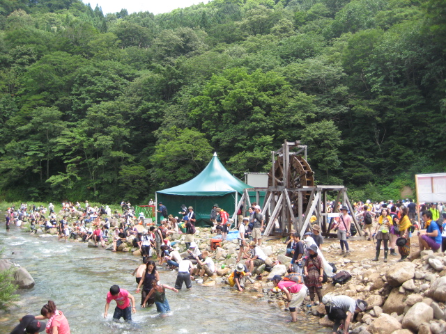途中の川で休憩している人たちもたくさん。