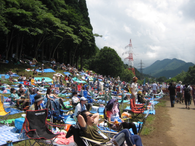 山の斜面には、テントを張ってゆったり見ている人もたくさん…