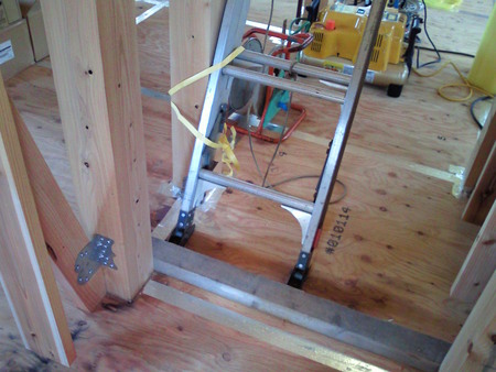 右上:仮設ハシゴの固定…OK