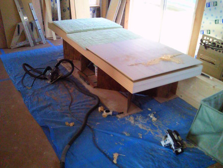 左:作業台の下にブルーシート…OK