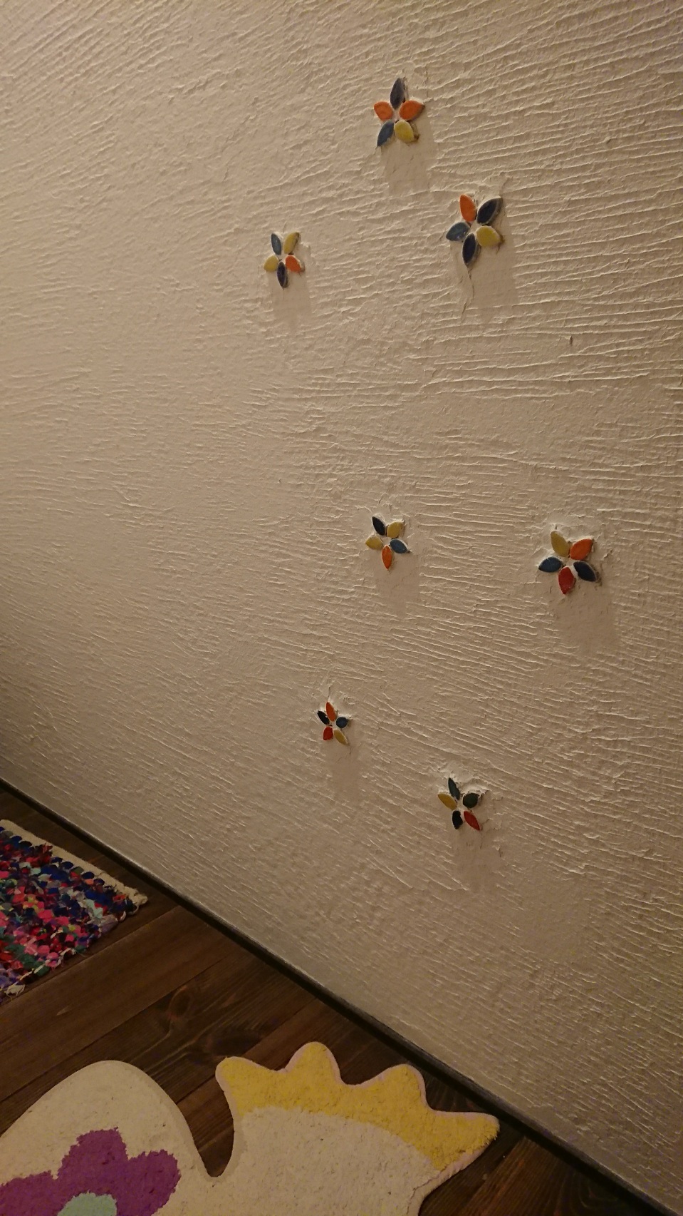 真っ白な壁にチョイとアクセントでネットで購入した葉っぱタイルを貼りました♪