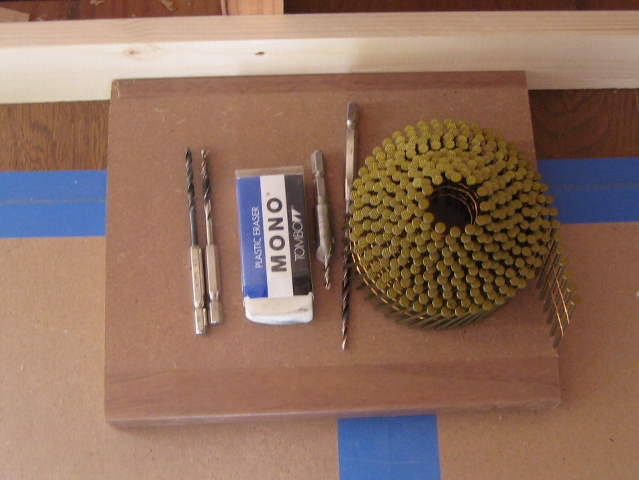 工具箱も整然と並んでます きれいに並べられた消しゴムと工具類