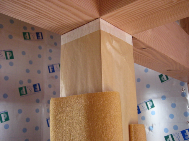 さらにその下にも!丁寧に柱に紙が巻かれていました。