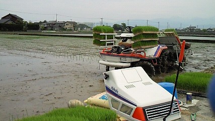 しょっぱなからこんなかんじで、2日間で終えれるか心配でしたが、 すぐに修理に駆けつけてもらえて、なんとか無事に終わりました 事情があって、日程的に遅めの田植えだったせいか、 苗の根っこが成長してしまって、なかなか苗が苗箱から出てきてくれず、 一枚一枚はがしていく作業が、ものすごーくタイヘンでした。 やっぱりなにごとも早めが一番ですね~ (農家の人にしか分からない話ですみません…) 新米ができたら、一人暮らしの友達に送ってあげると すごく喜んでくれるので、楽しみです。 中田