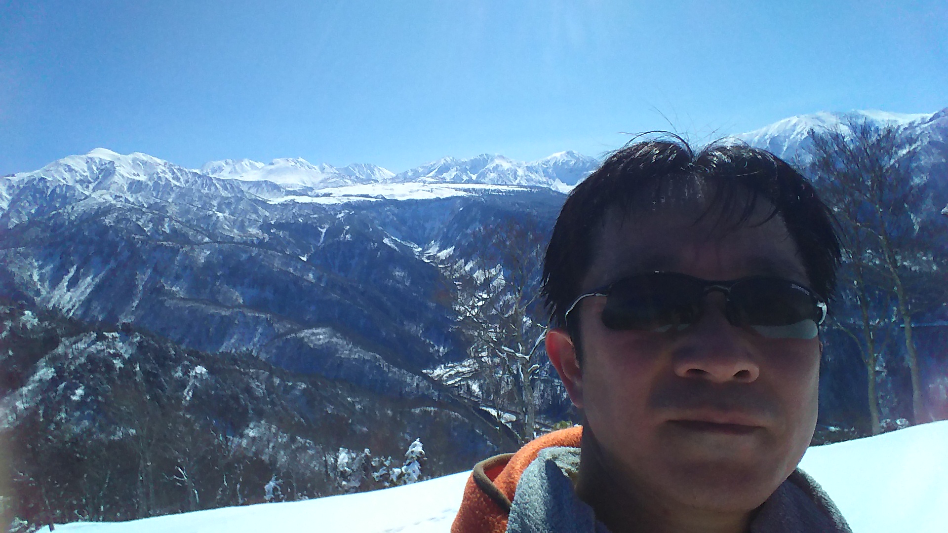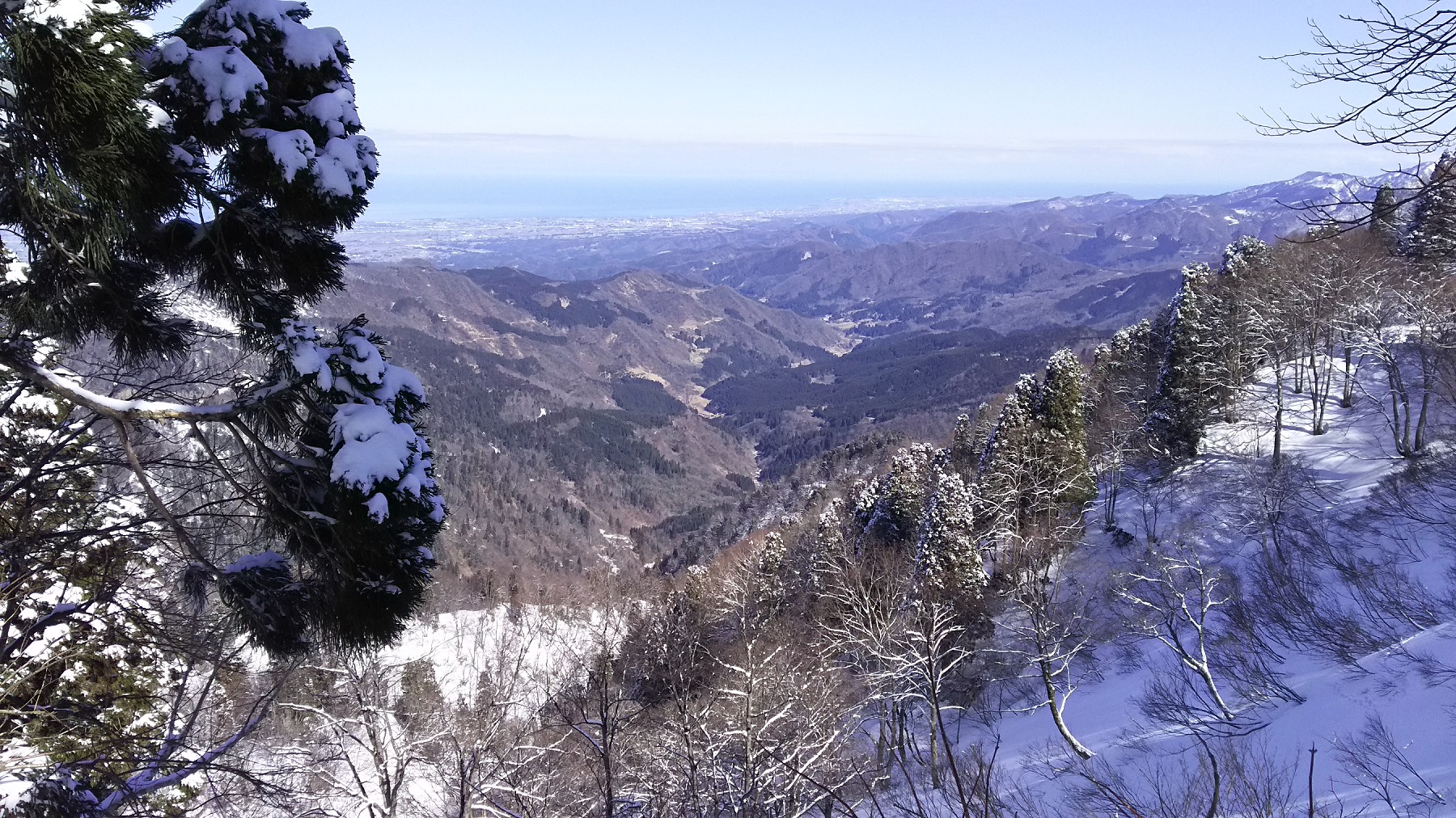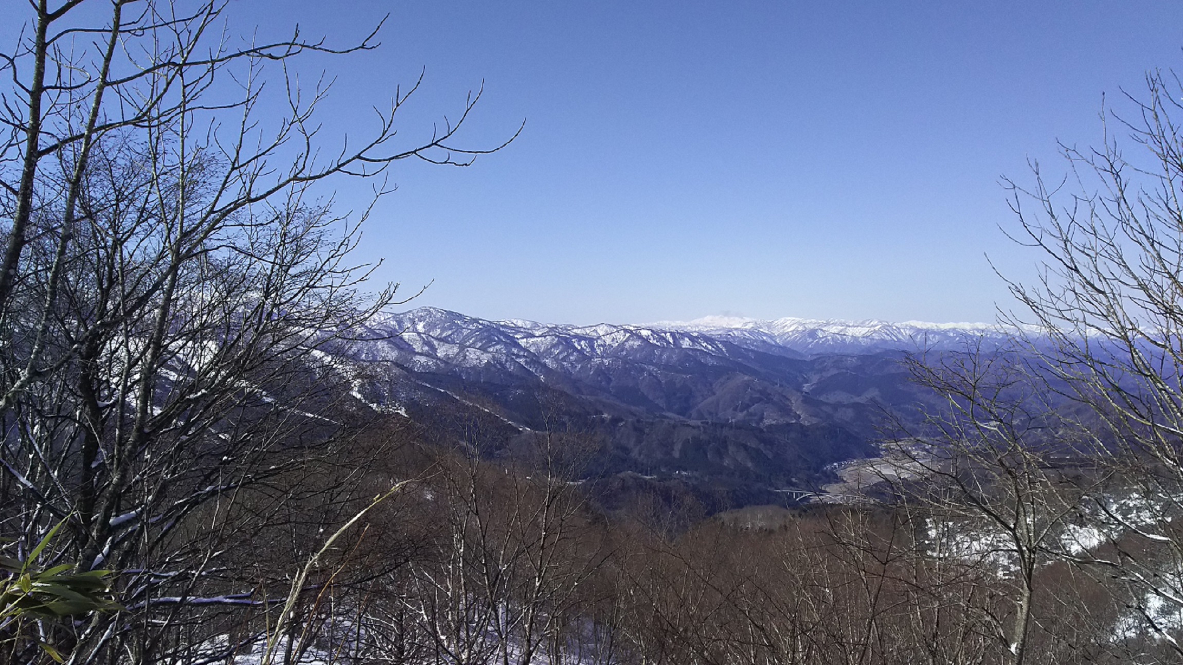 左端に立山山麓スキー場、はるか向こうに白山も見えてきました!