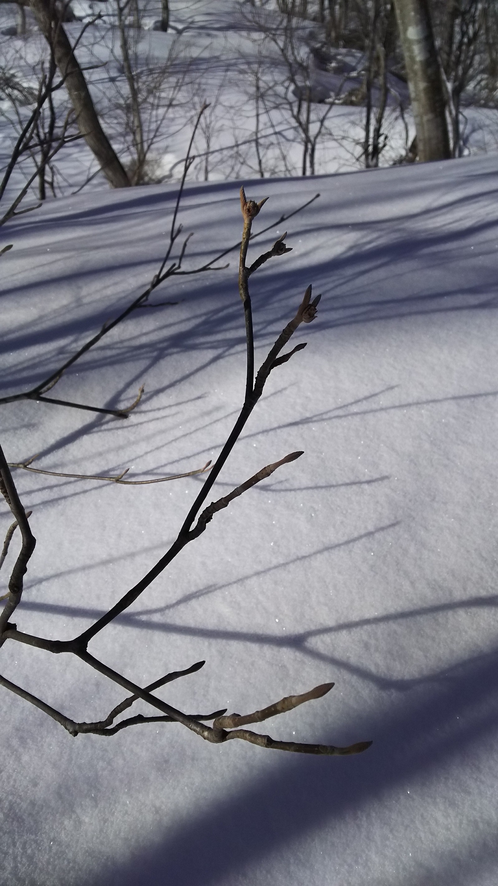 帰り道、春は遠いかと思いきや・・・深い雪の中でつぼみは膨らんでいました。