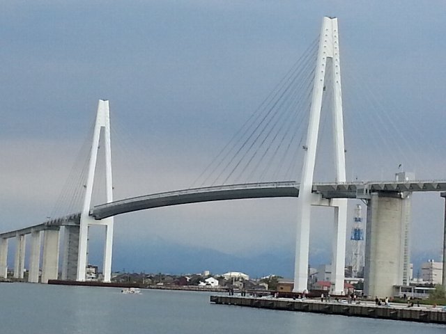 でも回復して、最終日に新湊まで 家族とドライブ行き 気分転換してきました なかなか素敵な 帆船と 新しい橋 潮の香りに包まれて ちょっと シアワセ