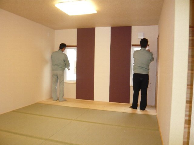 H21.1.26 T様邸の完成検査が行われました。 外は気温が低くてとても寒い日でしたが家の中は暖房器具の試運転中の為とても暖かくて、快適さを実感しながらの検査でした。 構造はFP仕様で1階の床は赤松の無垢材が使用されていて『床暖房なんて全然必要ないよね!』なんて・・・・・・・・自画自賛 もうすぐお引渡しです。 検査員 山下社長 担当 鈴木 東 政田