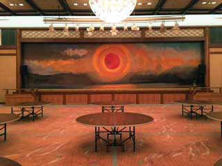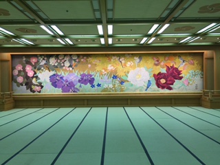 館内にある絵や大きな置物、大宴会場、コンベンションホールなど ひとつひとつ回って説明してくれました。