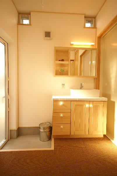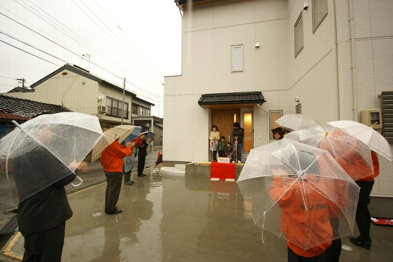 A様邸は「FP 自然の杜」です。 外は雨で寒かったのですが、家の中は蓄熱暖房でポッカポカ。 しかも、新建材や、クロスの接着剤のにおいなどがいっさいありません。 キッチンや、洗面台も手造りのオリジナルで、奥様も大変満足しておられました。 A様、これからもよろしくお願いします。 担当:大野
