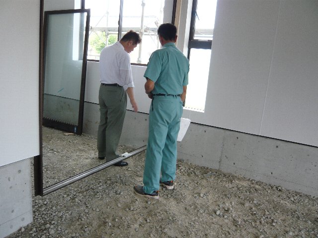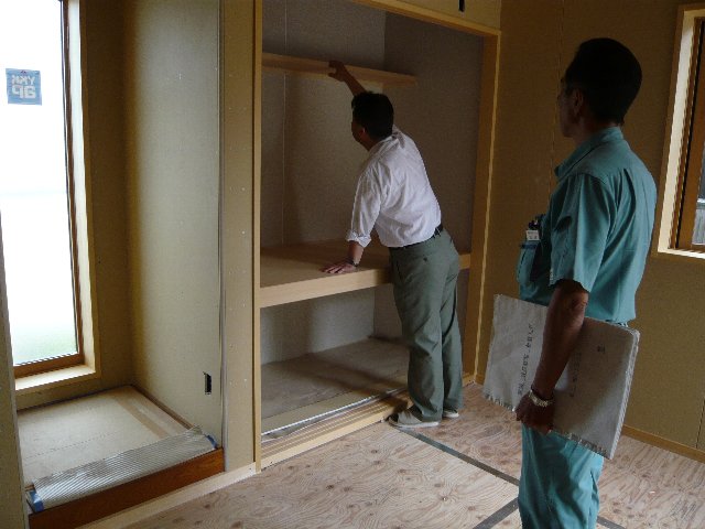 本日1件目の大工検査です。 しっかり検査させていただきました。 検査員:山下社長 立会人:政田       囲       鈴木