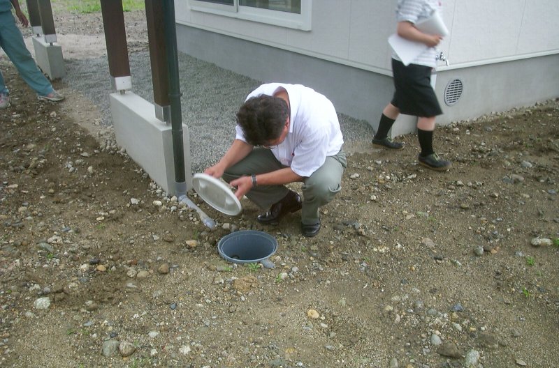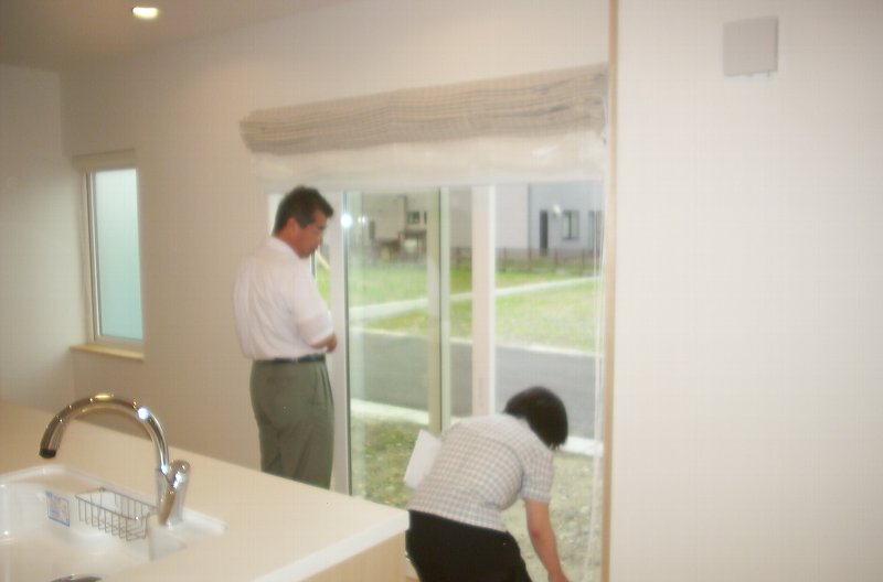 今日はどしゃ降りの雨が降ったり、やんだりの天気でした。 午後から完成検査で、検査中は良い天気でした。 検査員:山下社長 立会人:松下      囲      入井