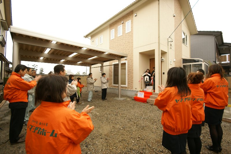 H21.2/6 N様邸のお引渡し式がありました。 ちなみに、担当工務は数々の雨男伝説を作ってきたM氏だった為、式の前は非常に不安でした・・・・・ しかしお施主様のお人柄のおかげで、式の時間からは快晴でした。 実はN様の奥様は弊社でいつも大工工事をお願いしている大工さんの娘さんです。 私とこの大工さんの出会いは約10年前(年がばれるかな?)からです。 偶然なのですが、なぜか私の担当物件はこの大工さんが施工することが多かった為 そのお仕事を目にする機会が多かったので、今回この大工さんの物件を担当することができてとても嬉しく思います! この大工さんが担当する物件はお客様がお引渡し後にご紹介をして下される確率が非常に高く、ご紹介されたお客様は必ず、 「大工さんは ○○大工さんを指名したら良いよ」といわれます。 お客様に理由を聞くと、「仕事の仕上げがきれいだし、本来見積もり範囲に無いはずの仕上げまで、『自分が納得できないから仕上げておきます。』といって仕上げてくれたんです。」 というエピソードがたくさん有ります。本当にありがとうございます。 もちろん山下ホームの職人さんは、皆さんとても腕が良く、信頼できる方々ばかりです!! 「あぁ・・うちのお父さんも大工さんだったら良かったのに・・」と思う今日この頃です。 担当  入井