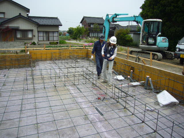 今日はT様邸 第3者機関の基礎配筋検査が行なわれました。 検査員: 日本住宅保証検査機構 山岸さん 立会人: ㈱山下ホーム 小倉