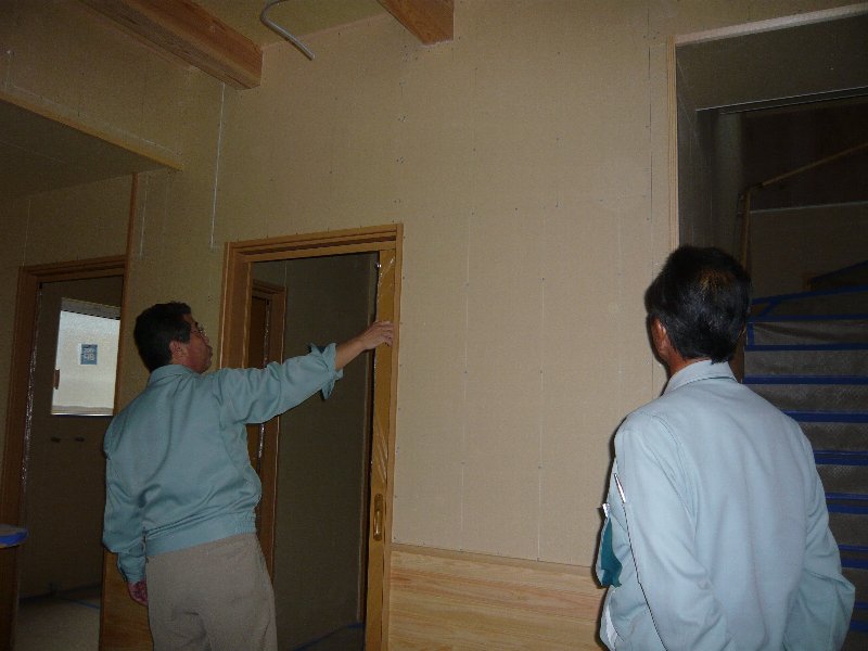 今日はT様邸の社内大工検査が行なわれました。 社長による大工木工事のチェックです。 各担当者も立ち会います。 検査員:山下社長 立会人:鈴木 東 政田