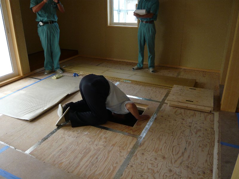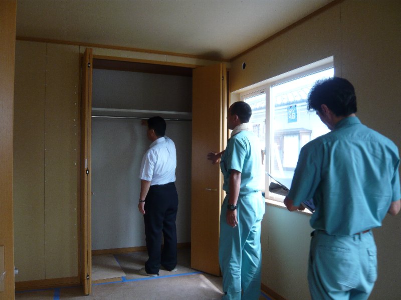 今日はT様邸の社内大工検査でした。 社長による大工木工事のチェックです。 各担当者も立ち会います。 検査員:山下社長 立会人:鈴木 東 小倉