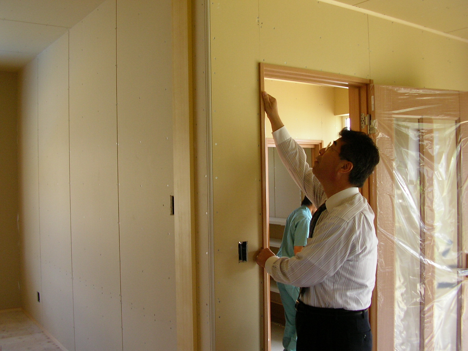 本日T様邸で大工検査が行われました。 検査員 山下輝雄 立会人 政田       囲