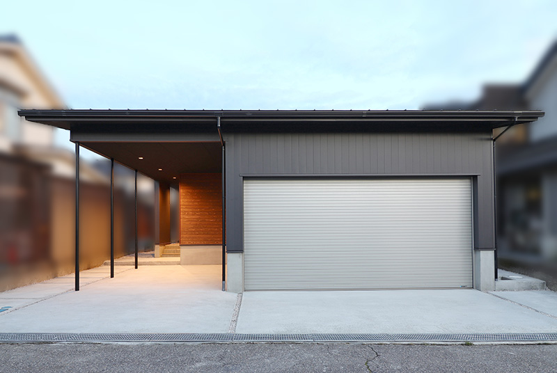 黒のガルバリウム鋼板の外壁で落ち着いた雰囲気のあるデザイン。