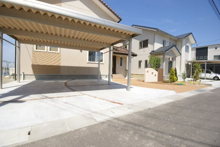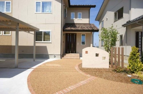 カーポートの下はレンガで造作しています。