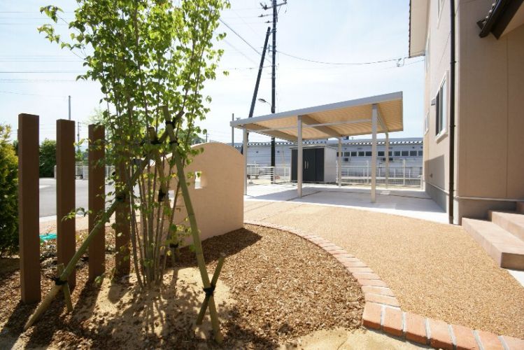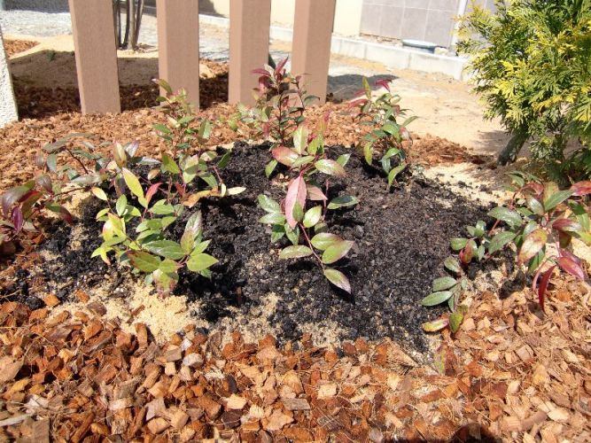 木のチップを敷き詰めてあります。草が生えるのを抑えてくれて、見た目もオシャレです。