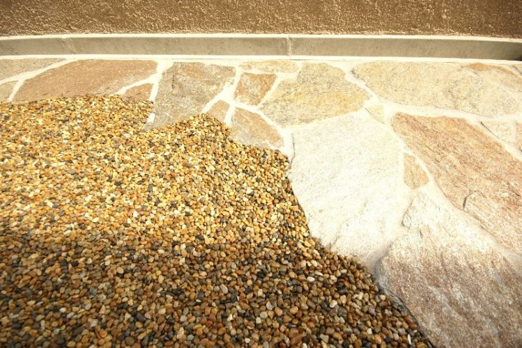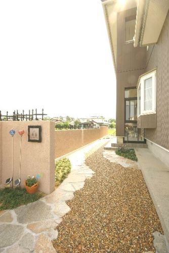 天然石が家の色とコーディネートされていていい雰囲気。細かい砂利は固めてあるので、とても歩きやすいんです◎