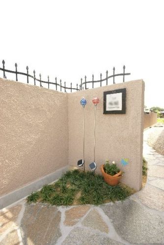 低めの塀にはアイアンの飾りがついていてオシャレ