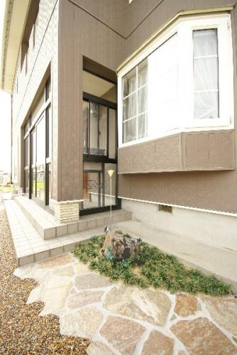 玄関までのアプローチ部分を施工させていただきました! 入口はさりげなく仕切って、目隠しにもなりますね◎