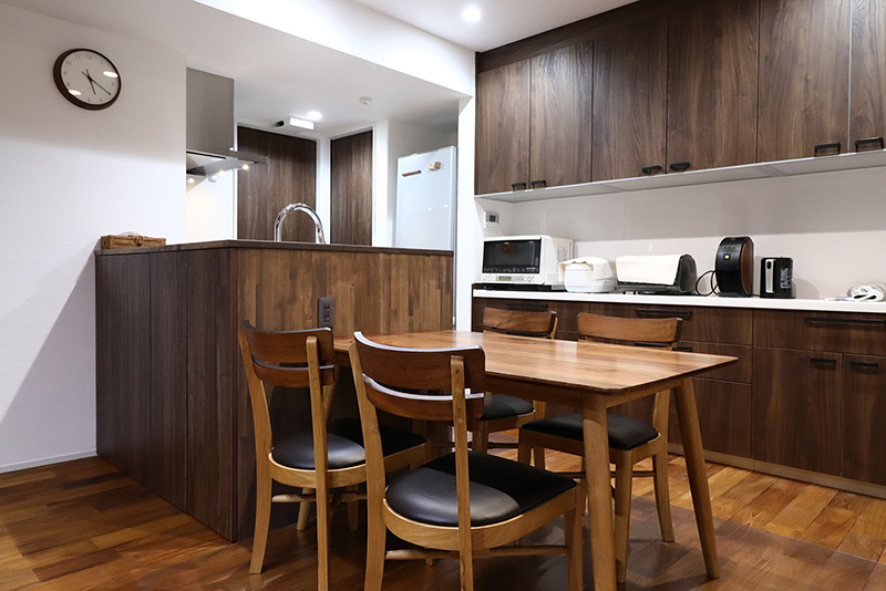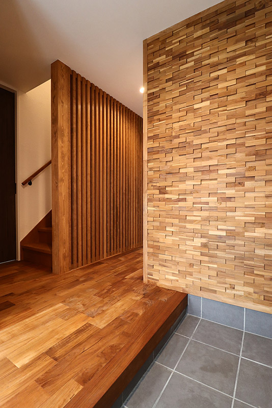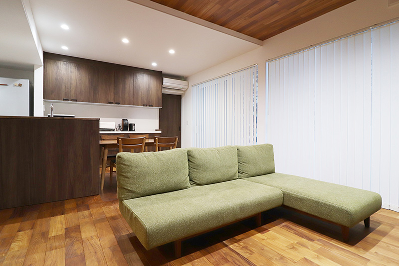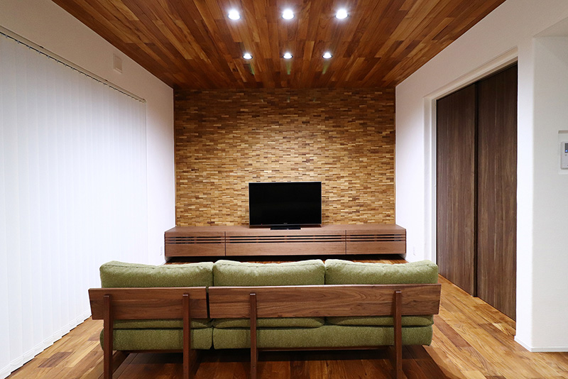 ご家族がくつろぐリビングは、床・天井にチークの無垢材をあしらい、家の中で深呼吸したくなるお家になりました。