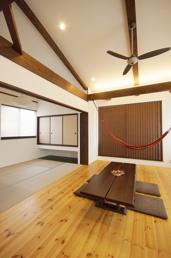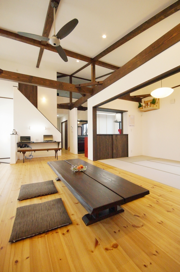 古民家、和モダンをイメージして建てられたお家。 日本の伝統的スタイルを尊重しながらも、やさしい木の温もりが感じられる和モダンテイストなお家です。