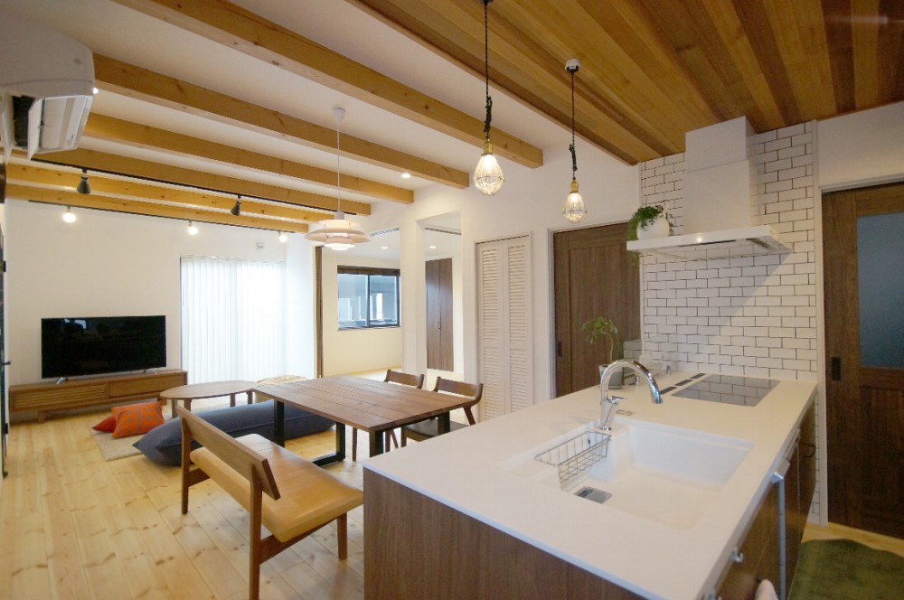 ブルックリンスタイルを意識したY様邸。 ダイニングテーブルやキッチンは、ウォールナットで統一し、色のコントラストが美しくコーディネートされています。
