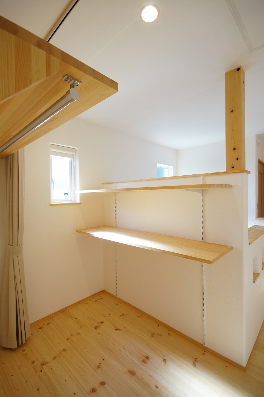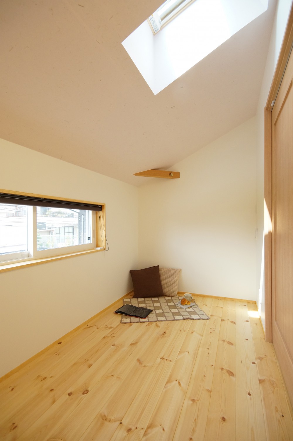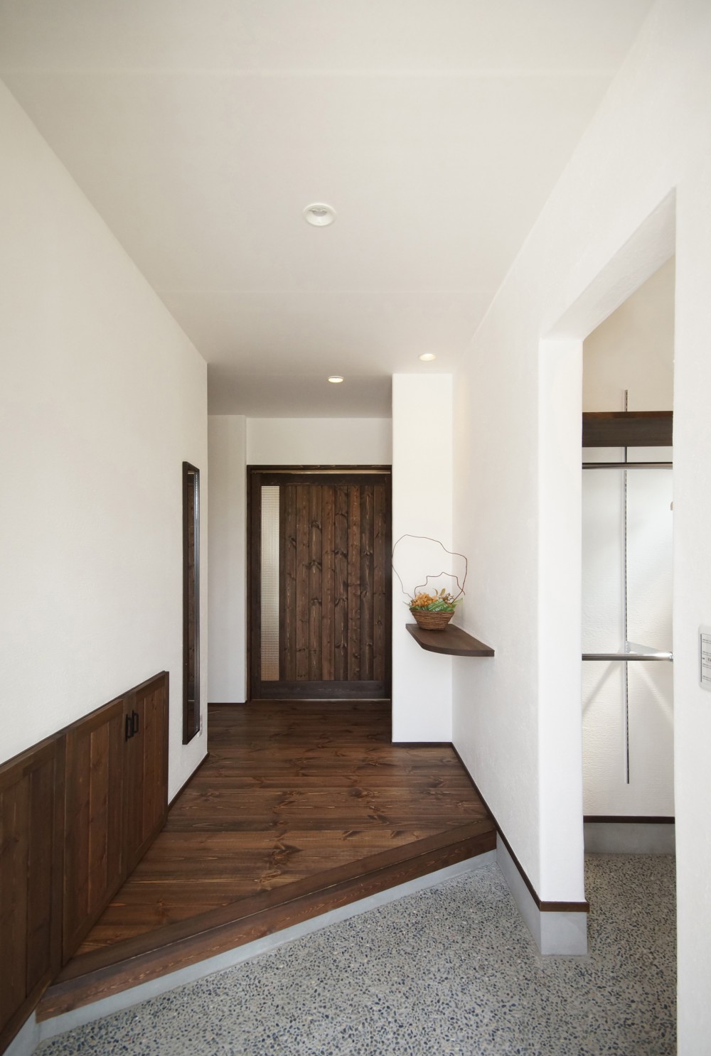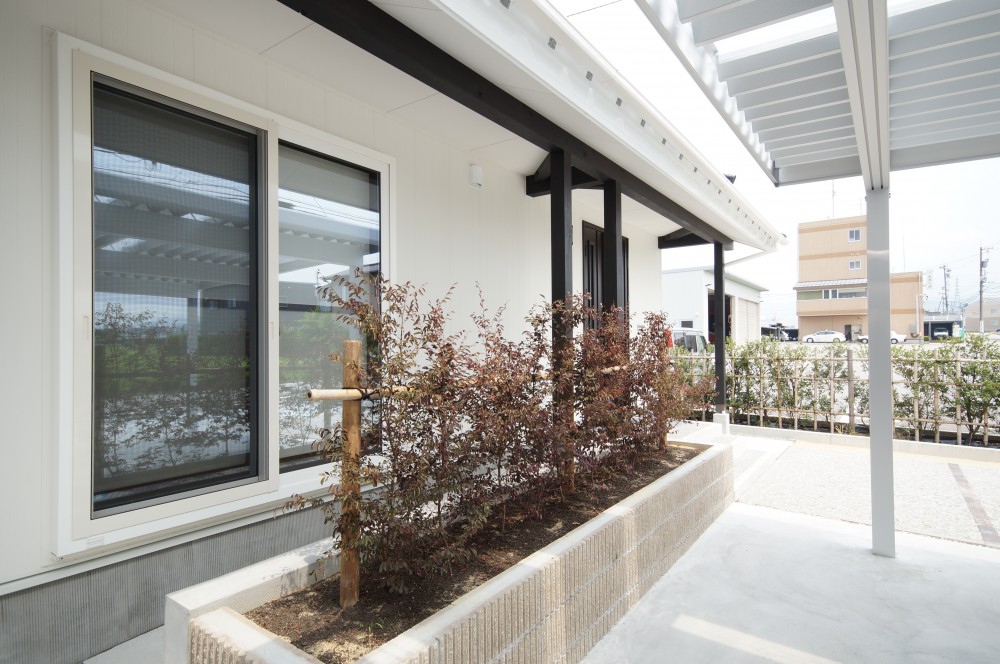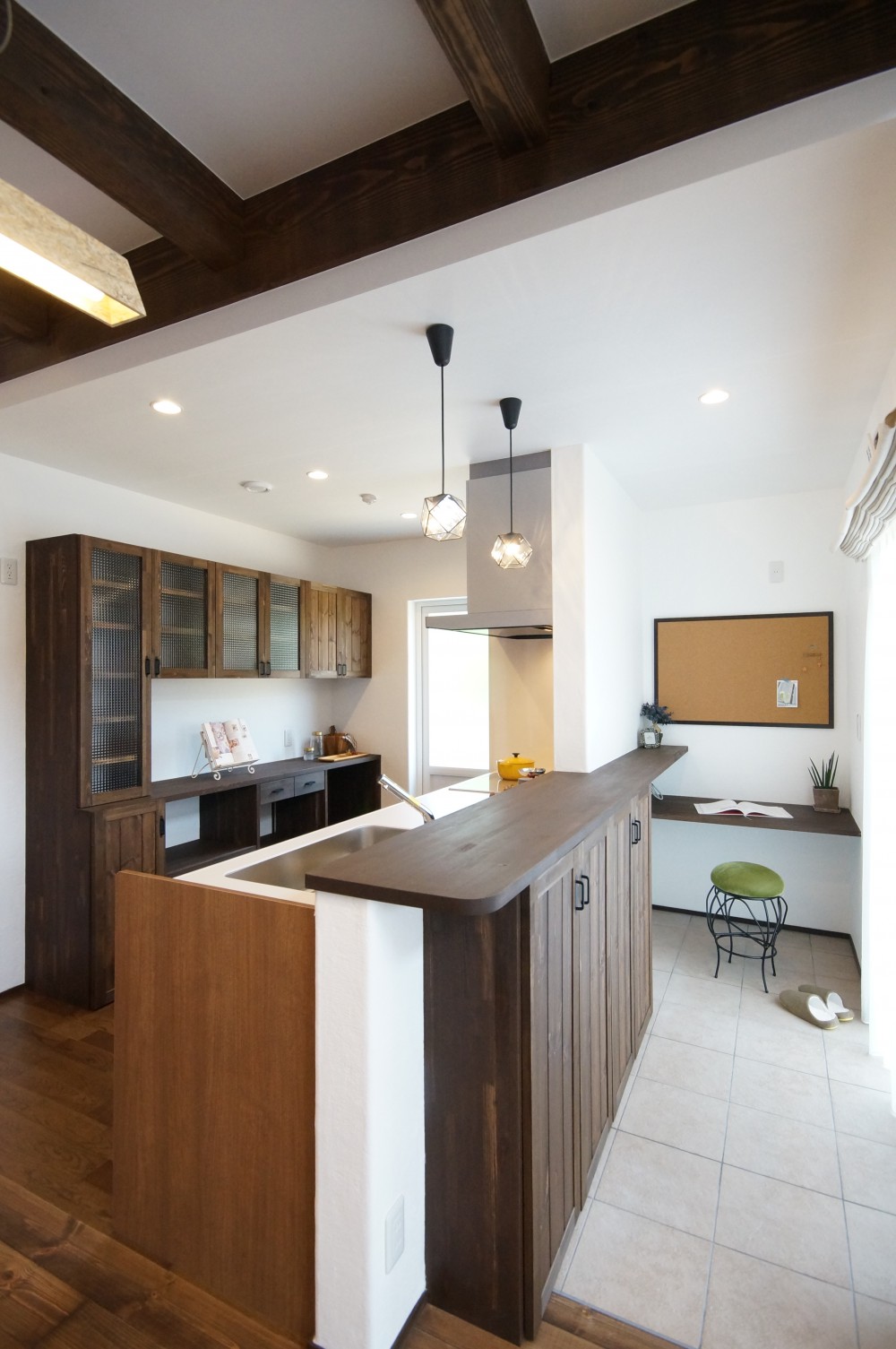 落ち着いた色合い、掘りごたつのある和室など、心とからだに安らぎをもたらす雰囲気が特徴のお住まいです。南に人通りのある道路があるので、リビングは北向きにして、表の喧騒からプライベートを守りつつ、吹き抜けから優しい光を採りこむプランを採用しました。さらにリビングはウッドデッキへと広がり、どこをとっても心地よさしかない、上質な空間となりました。