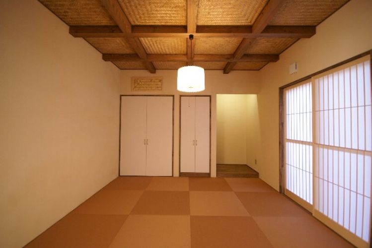 和室も茶系まとめられています。 天井はアジロ貼りになっています。