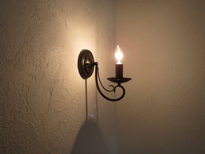階段の照明です。 漆喰の壁に陰影ができて綺麗です。
