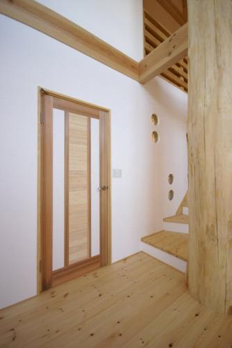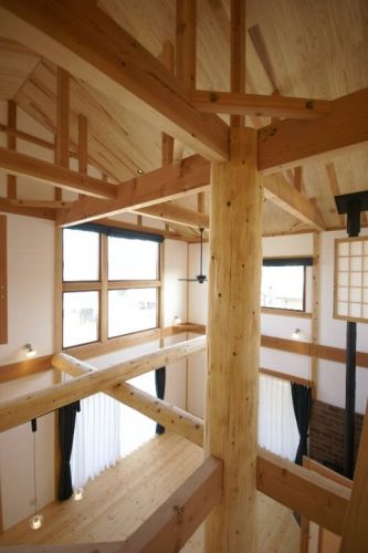 2Fホールからリビングを眺めるとこんな感じです。木が家を支えています!当たり前ですが。