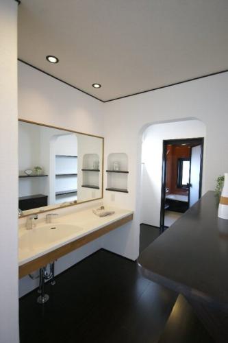 洗面脱衣室は黒です。グッと引き締まった印象。広い洗面台、憧れます。