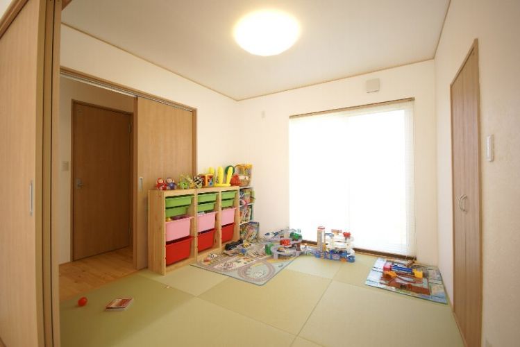 和室はお子様の遊び場に。ごちゃごちゃしがちなオモチャも引出しに入れてしまえばスッキリ片付きますね。