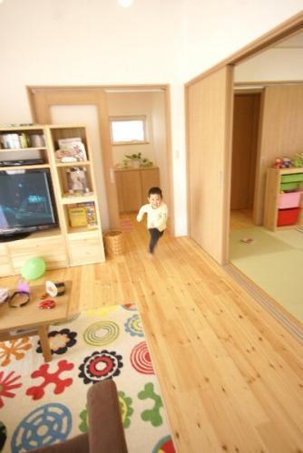 かけっこの練習中。裸足でダダダーッと。家の中で思いっきり走れるって嬉しいですね。